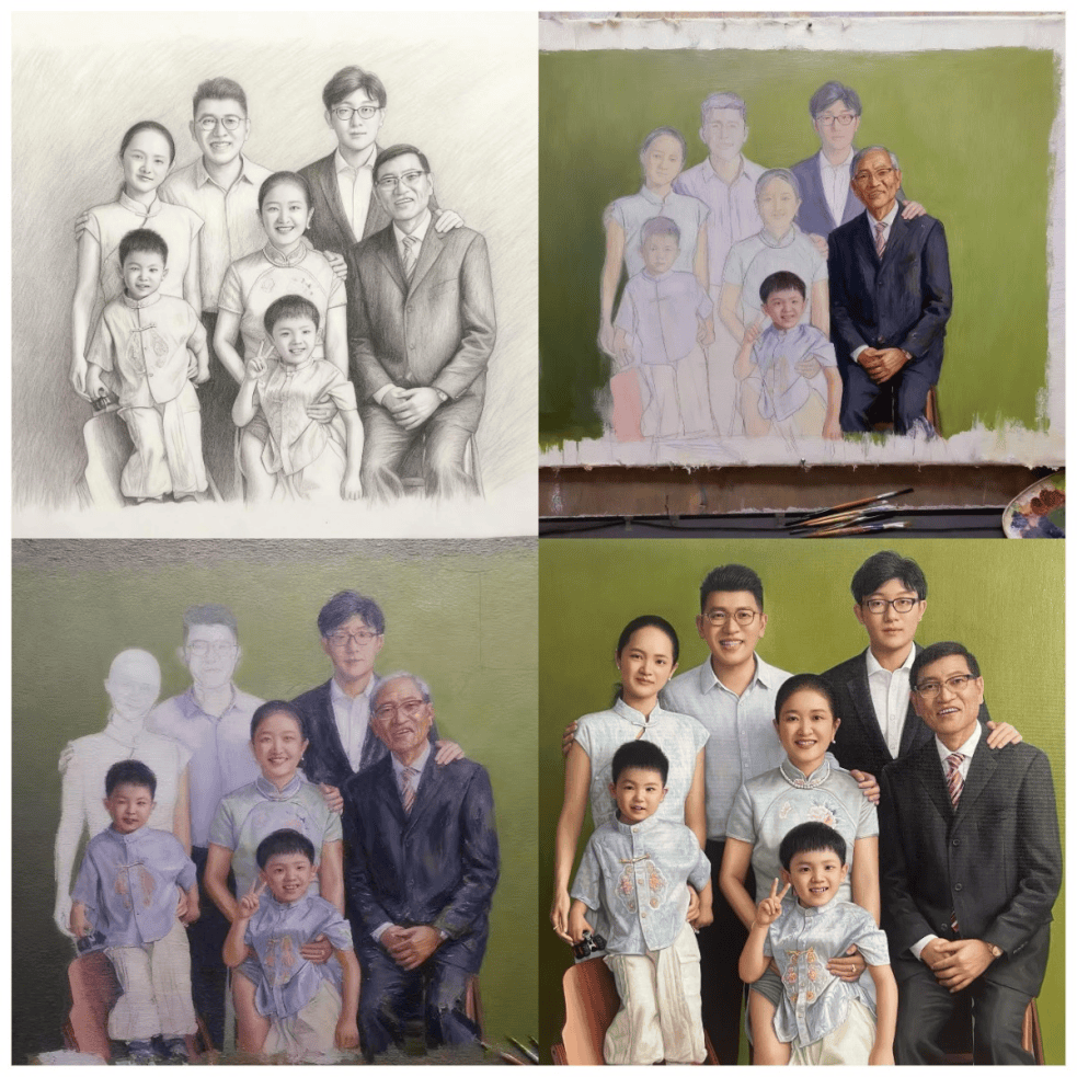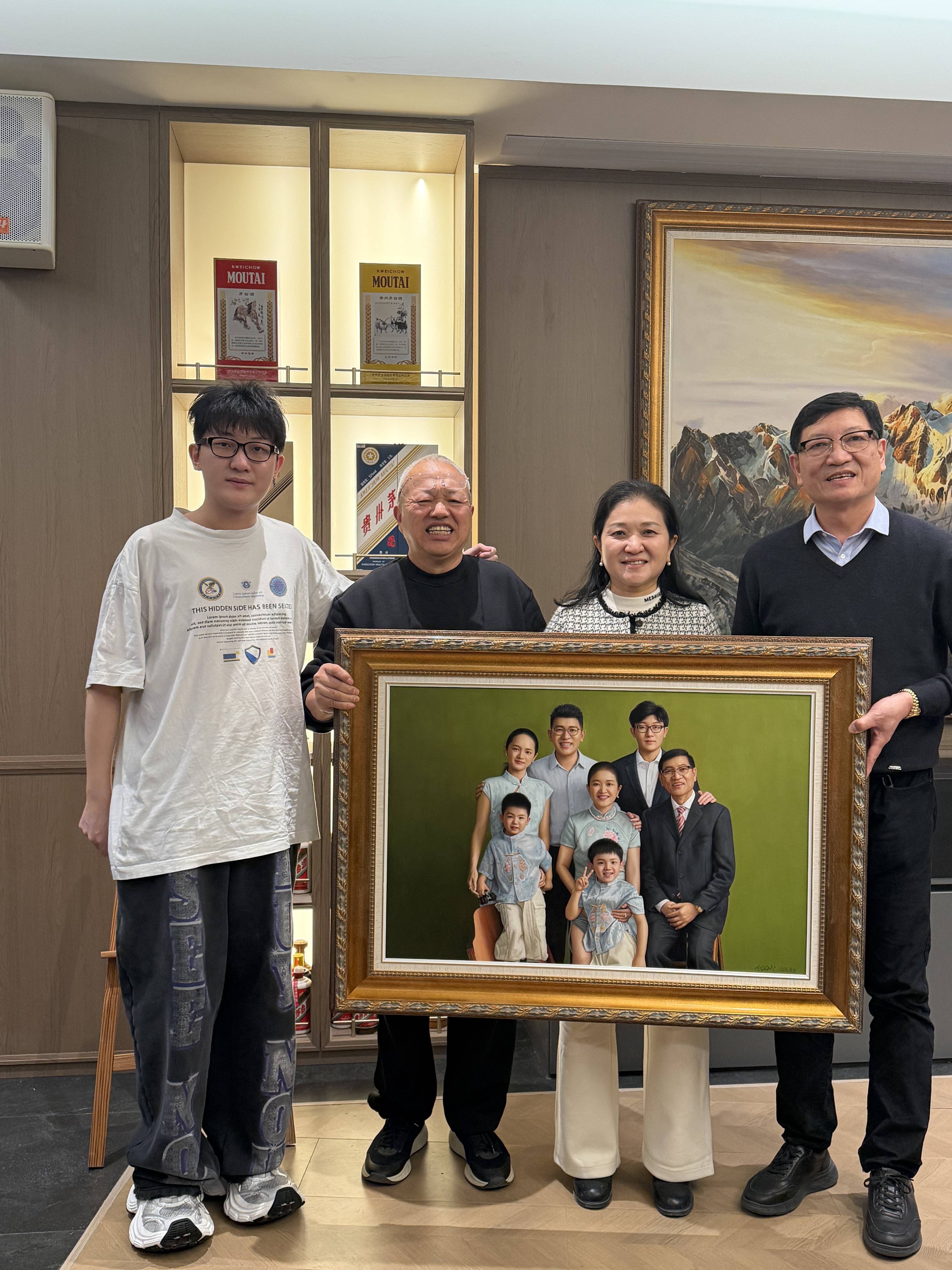 记者在现场看到,这幅《幸福一家人》油画生动还原了丁椒平家庭的温馨合影:画面中,丁椒平与夫人代翠平神情温和从容;大儿子丁宇凡一家与小儿子环绕身旁,阖家团圆的氛围扑面而来。笔触细腻传神,不仅精准捕捉了家庭成员的神态特质,更将家庭中流淌的和睦温情展现得淋漓尽致。