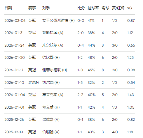 查尔顿竞技在最近十场各项赛事中表现出极强的不稳定性。尽管他们曾在主场以1-0击败强敌谢菲尔德联(Sheffield United),并在客场2-0爆冷击败莱斯特城(Leicester City),但也经历了0-4负于米尔沃尔(Millwall)和足总杯1-5惨败给切尔西(Chelsea)的低谷 。这种表现特征反映了内森·琼斯(Nathan Jones)治下球队典型的“遇强不弱,遇弱不强”的神经刀属性。