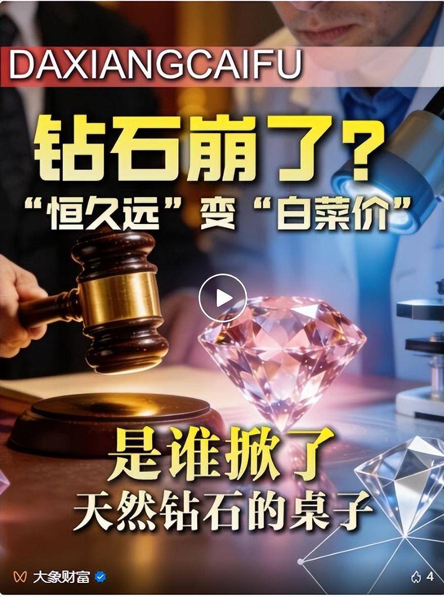 给普通人两句掏心窝子建议:第一,别再信爱情绑架消费的故事;第二,千万别想着买钻石投资,除非你是顶级玩家。