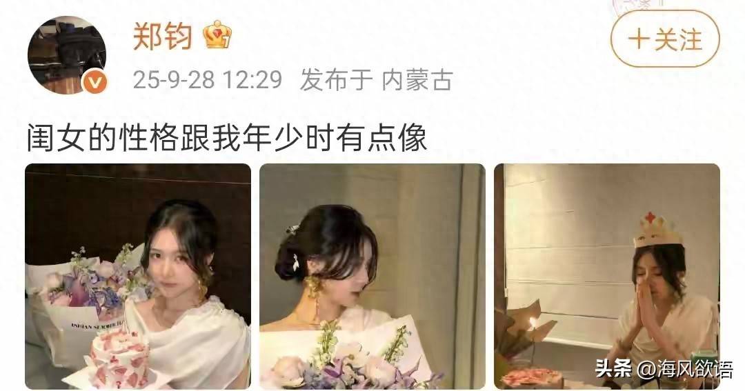 郑钧此次发布的庆生内容虽简单,却处处透着温情。他在社交平台上传了两张照片,未配过多文字,仅用一句 “闺女的性格跟我年少时有点像” 收尾,却精准传递出对女儿的认可与疼爱。这种 “少言却深情” 的表达方式,既符合他一贯低调的风格,又让网友感受到父爱的深沉。?