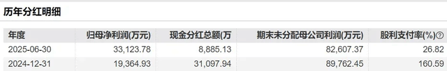 2024年,潮宏基进行了上市以来的最高分红——3.11亿元,股利支付率高达160.59%。按照上述股权比例计算,廖木枝家族可拿走超7000万元分红。2025年上半年,潮宏基拟分红约8885.13万元,廖木枝家族还能够拿走超2000万元现金分红。