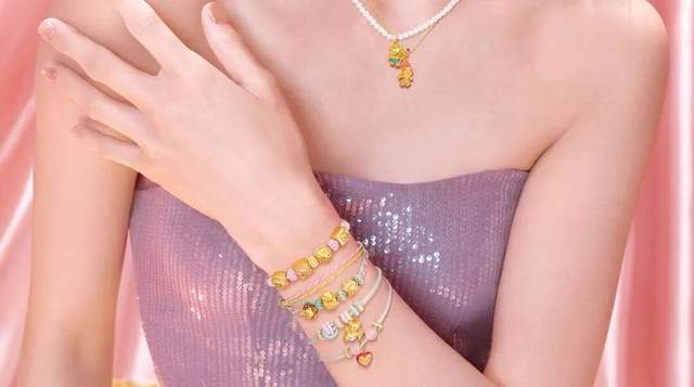从2023年开始,潮宏基推出「小克重黄金」战略,将传统黄金饰品重量压缩至0.1-1克区间,并携手皮卡丘、小黄人等构建IP产品基础,摆脱了按克称重模式。