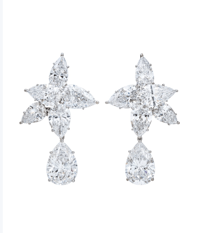 排在第四和第五位的是来自 RONALD ABRAM的钻石心形项链(主石是一颗 36.20 克拉的心形明亮式切割钻石)和 FRED的一对钻石耳环(镶嵌一对重2.39至10.69克拉的梨形明亮式切割钻石),成交价分别是219.5万瑞士法郎和189万瑞士法郎。