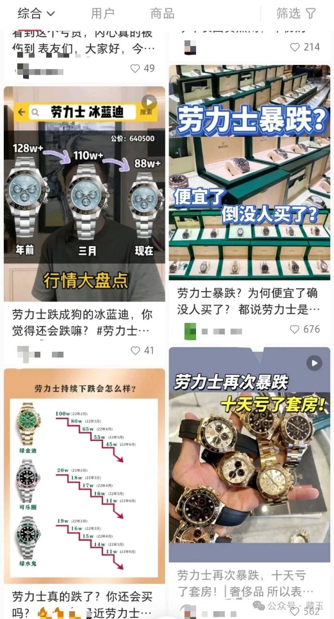 曾经被奉为财富与身份象征、保值增值硬通货的名表,如劳力士、江诗丹顿等品牌,在二手市场价格持续下跌。