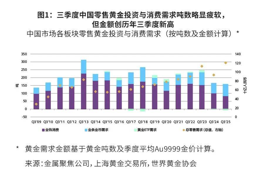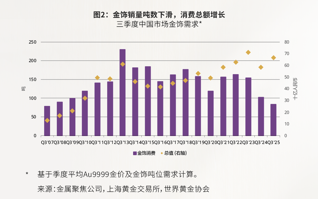 这种趋势在中国市场尤为明显:前三季度,中国黄金投资需求首次超过首饰需求,成为市场增长的核心支撑;而首饰需求虽金额仍有增长,但总量下降幅度为近年最大。“黄金的投资属性和商品属性一直并存,只是高金价让投资属性更加凸显。”王立新分析,“这种结构性分化不是短期波动,而是长期趋势——随着消费者对黄金价值的重新认知,投资金和首饰金的需求边界会越来越清晰。”