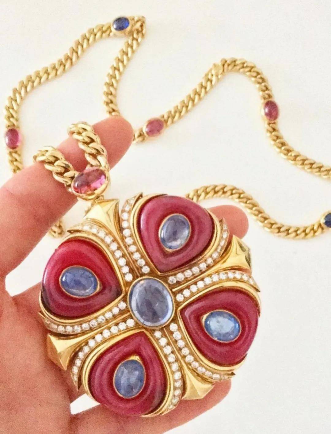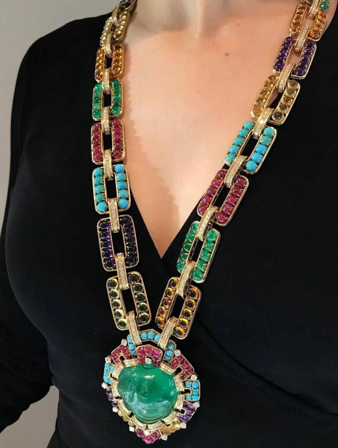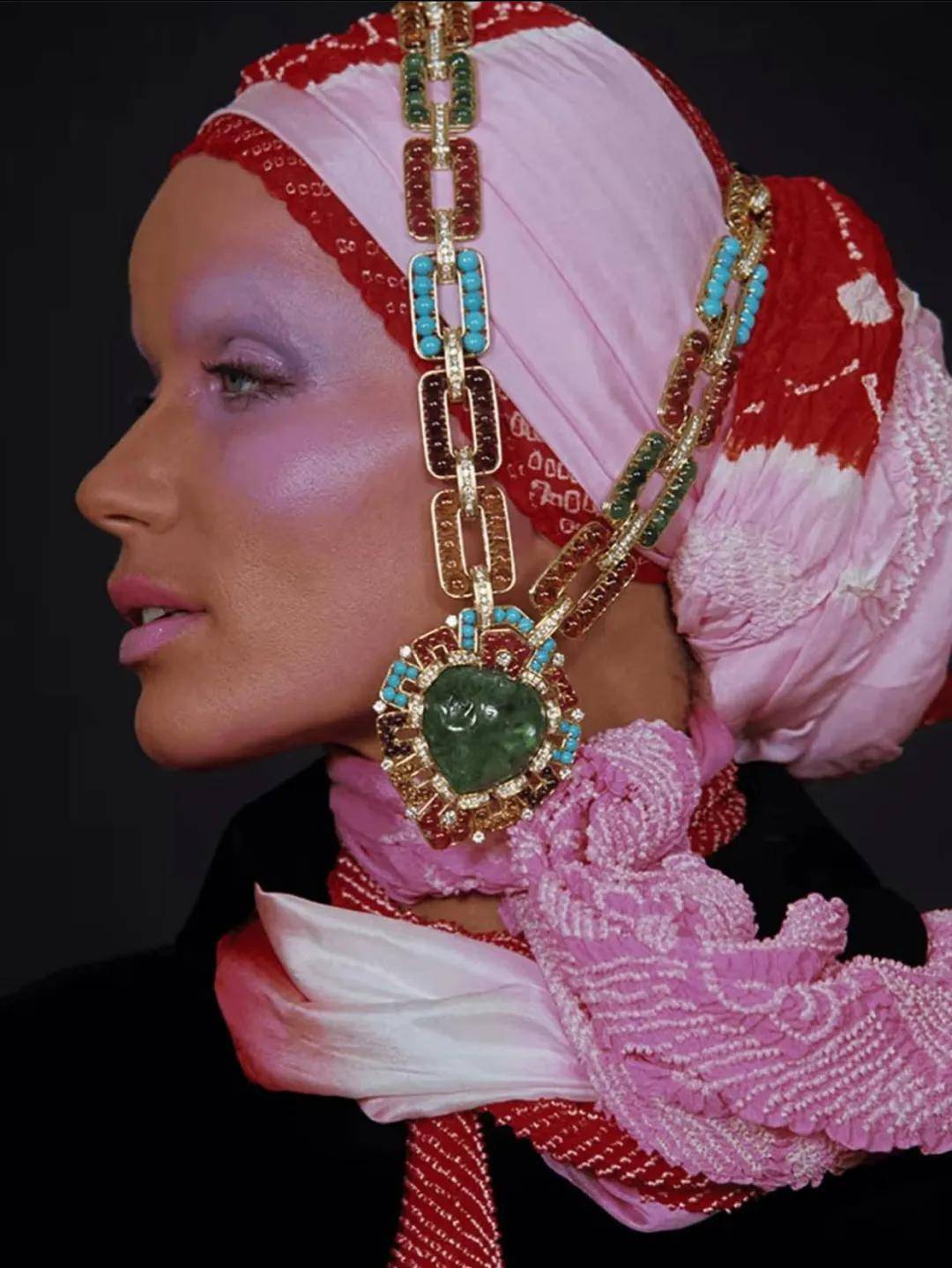 色彩的疆域也被无限拓宽。宝格丽的调色盘上,迎来了绿松石的澄澈、珊瑚的炽热、青金石的深邃。这些充满生命力的硬石,与温润的黄金和璀璨的钻石交织共舞,碰撞出极具张力的视觉乐章。凸圆形切割宝石以其圆润柔美的形态,抚平了时代的棱角,只为衬托佩戴者的光芒。