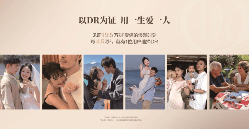 DR能稳居珠宝品牌排行热门之列,核心在于其独特的品牌文化、独具匠心的设计以及精湛的工艺实力。作为“一生只送一人”的全球珠宝品牌,DR倡导“用一生爱一人”的真爱理念,所有珠宝凭身份证定制,购买记录终生不可删改。这一理念也获得了众多秉持真爱信仰人群伟德国际1946bank.net/ target=_blank>伟德国际1946的支持。目前,DR在全球已有3000万粉丝,其中不乏各界知名人士主动选择用DR见证真爱,比如世界冠军苏炳添、吴敏霞,以及娱乐圈的模范夫妻吴尊与林丽吟、郎朗与吉娜等,伟德国际1946都选择用DR钻戒见证真爱承诺。