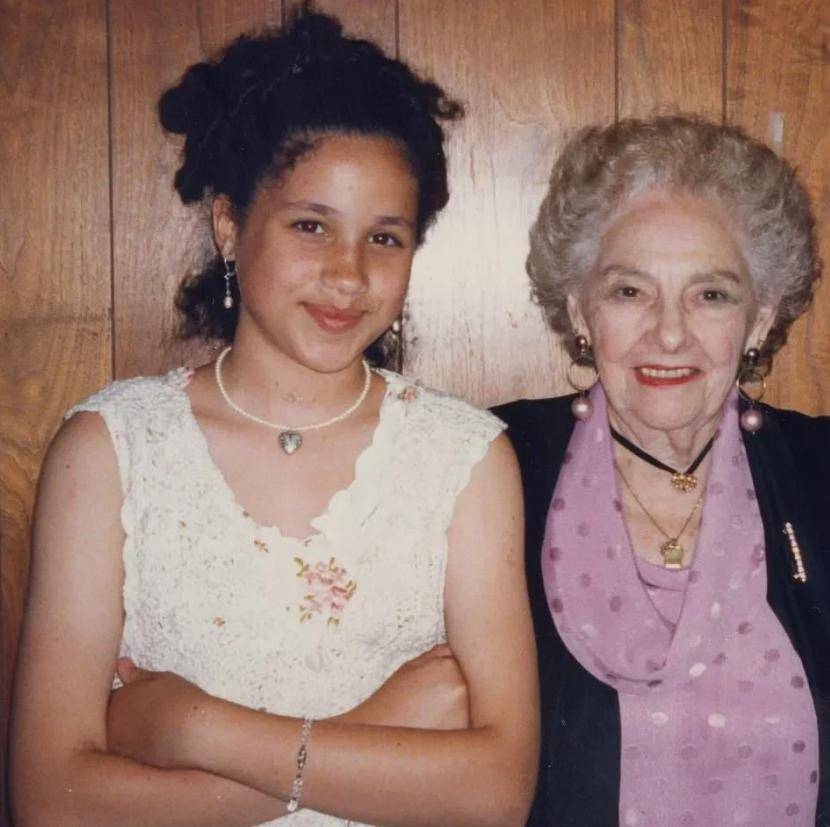 有意思的是,在梅根12岁的照片中,她的脖子上还戴着一条与自己婆婆款式相当的心形项链!