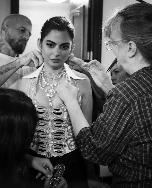 可能是想在这场时尚盛会上更加出彩,她脖子里佩戴的那款很罕见的卡地亚图桑项链是从母亲妮塔那里借来的。